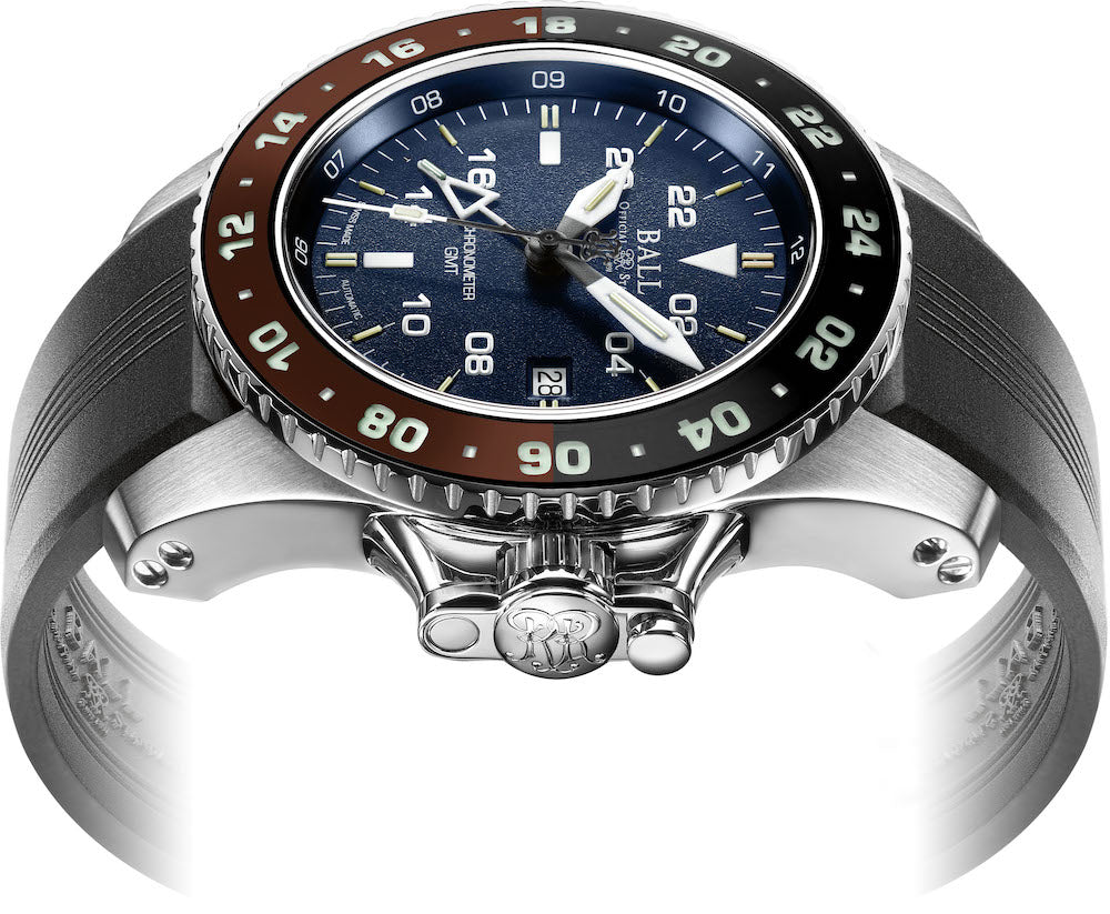 Ball Watch Company Engineer Hydrocarbon AeroGMT II DG2018C-P12C-BE. The Ball Watch Company Engineer Hydrocarbon is the Ultimate Explorers Watch benefiting of exceptional resistance and exclusive patented innovations as a triple folding buckle, a crown protection, the Amortiser and the SpringLOCK.