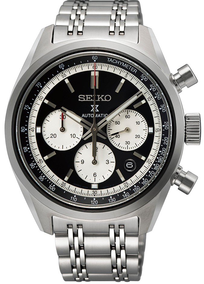 This mechanical chronograph takes direct inspiration from the Seiko archives of the popular 1970s motor sports influenced chronograph releases. Inspired by the 'Seiko reserved Panda' (6138) model from 1972, the dial of this piece aims to depict a chic and elegant sports car.