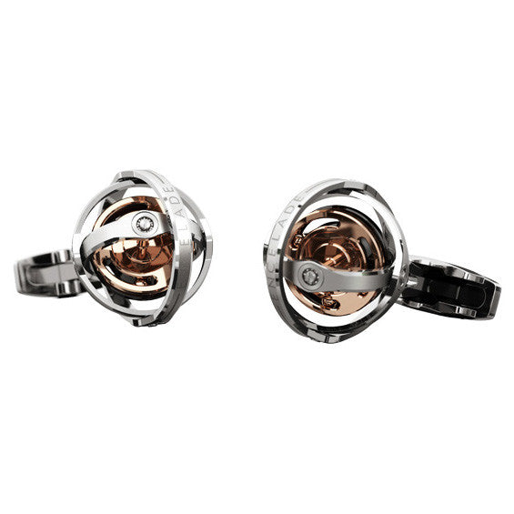 Encelade 1789 Gyro Cufflinks 1797. The two cousins who founded the ENCELADE brand each have their own gyroscope. It was this object, straight from their childhood, that led them to conceive and develop the first gyroscopic cufflink in the world (patented design), comprising 56 elements and no less than 12 ball bearings (a record). It took two years of development and testing to create this technically sophisticated accessory crafted for endless delight. Enjoy being a child again!