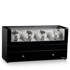 Discover our stunning range of Designhutte Watch Winders including bluetooth controlled single watch winders, duo watch winders and multi watch winders that can fit up to eight watches in a single unit. Each Designhutte Watch Winder features a range of settings and functions, which include a range of speed settings and options for multi directional rotation. All of our Designhutte watch power units and Designhutte watch winders are specifically designed to keep your automatic watches safe, secure and maintained, available in a variety of finishes, powered by either batteries or an electric AC power adapter.