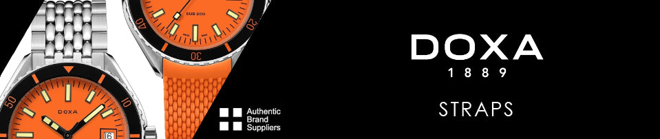 We are official stockists for all replacement straps and bracelets from DOXA, so if you are looking to replace your watch strap or bracelet or simply want a new look watch, we can help. If we don't have what you want in stock, then we will be happy to order it in directly from DOXA for you, simply cross reference the watch to the strap. If you need help and assistance please fill in our strap request form online and we will get back to you with a price and availability: