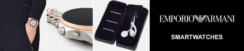Discover a huge range of Emporio Armani smartwatches online and in store with a stunning selection of Emporio Armani connected watches, Emporio Armani Renato watches and Emporio Armani wearables. Their striking and innovative designs stray away from the stereotypical smartwatch aesthetic and instead showcase a design of real luxury and glamour with rose gold cases and elegant leather straps.