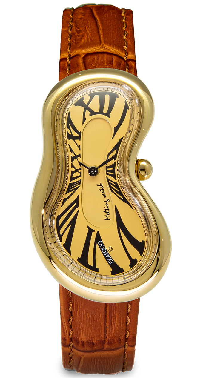 Exaequo Watch Melting PVD Gold EX0002.0003. Directly inspired by the aesthetics of the surrealist movement and the concept of fluid and unconventional time, the melting watches continue to fascinate with the rebirth of the Exaequo brand. With Exaequo, surrealistic culture returns to live on the wrists of enthusiasts, offering a timeless icon of style and culture for anyone willing to embrace and wear it on their wrist.