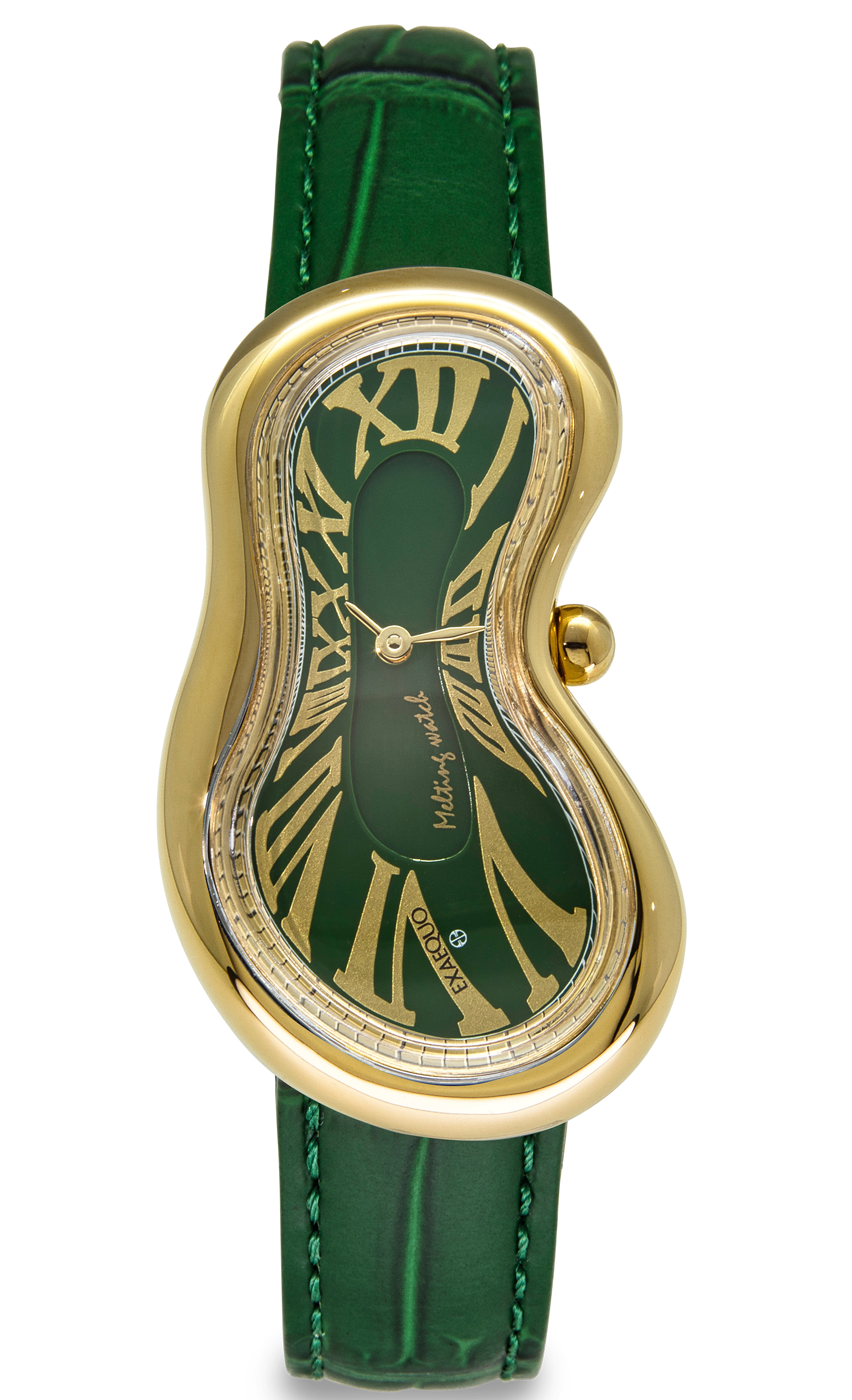 Exaequo Watch Melting PVD Gold Green EX0002.0005. Directly inspired by the aesthetics of the surrealist movement and the concept of fluid and unconventional time, the melting watches continue to fascinate with the rebirth of the Exaequo brand. With Exaequo, surrealistic culture returns to live on the wrists of enthusiasts, offering a timeless icon of style and culture for anyone willing to embrace and wear it on their wrist.