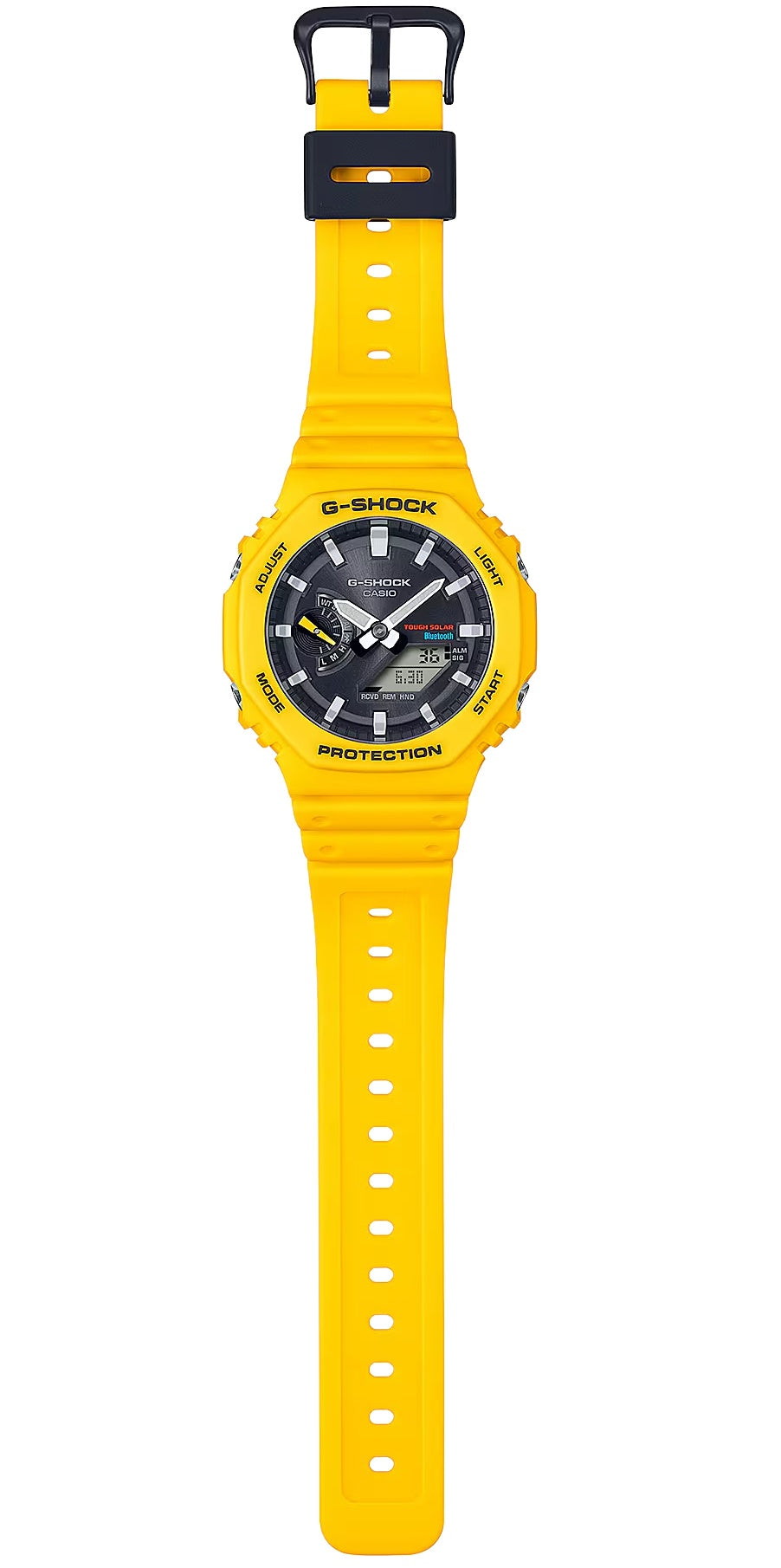 G-Shock Bluetooth Solar 2100 Series Watch GA-B2100C-9AER. The Tough Solar charging system effectively converts light from any light source to power the watch, eliminating the need to replace the battery, and Smartphone pairing via Bluetooth® delivers accurate timekeeping. Combining the Carbon Core Guard structure, which protects the module and provides both shock resistance and a compact case, with G SHOCK classic colours first used in the G SHOCK 5600 models enables you to wear the latest, and the greatest G SHOCK has to offer.