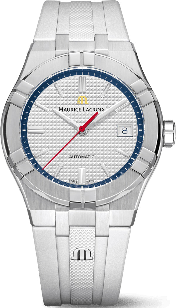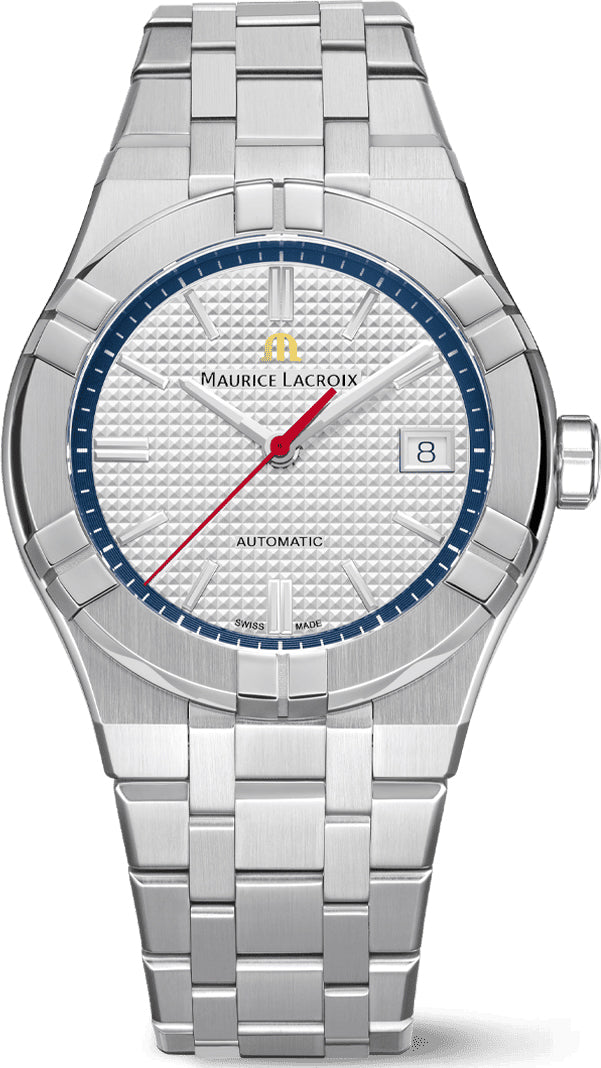Maurice Lacroix Watch Aikon Automatic Date Limited Edition AI6007-SS00F-130-A. Inspired by the iconic Calypso of the 90s, the AIKON has become an icon in its own right. The design language embraces bold, urban-styling and masterfully plays with contrasts. Like all of our watches, the AIKON unites Swiss craftsmanship and high perceived value.