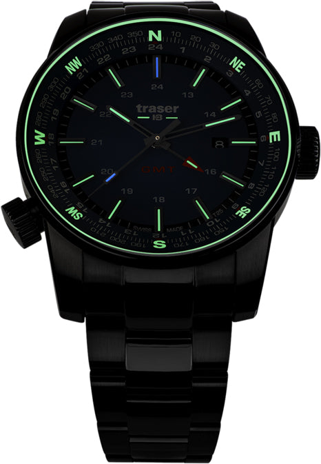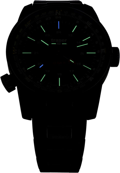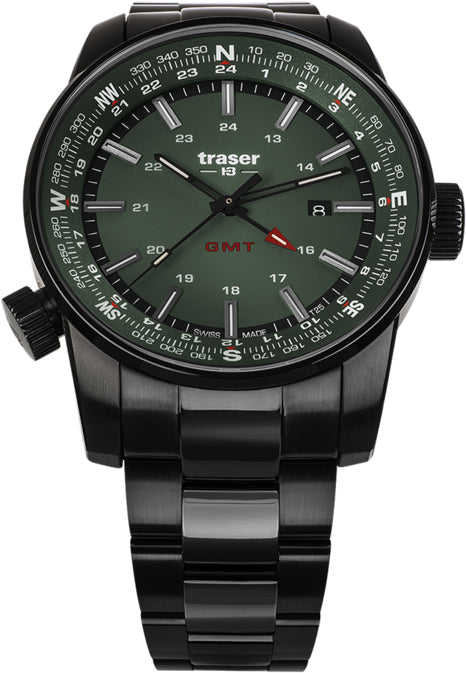 Traser H3 Watch P68 Pathfinder GMT Green 109525. rom the beginning, traser has pioneered the utmost innovation and always pushed limits of what is possible. Already in 1989, after a period of intensive research and engineering, the traser P6500 Type 6 was developed. This was the first self-illuminated watch ever produced. THE ORIGINAL. The P6500 Type 6 was supplied to the US Army, which defined the brand‘s personality and had a great impact on what it stands for today. The Tactical collection incorporates traser‘s roots with highly resistant materials, uncompromising functionality, robust design and a strong appearance. Keeping the tactical spirit alive. The reliable companion for professionals, adventurers and explorers.