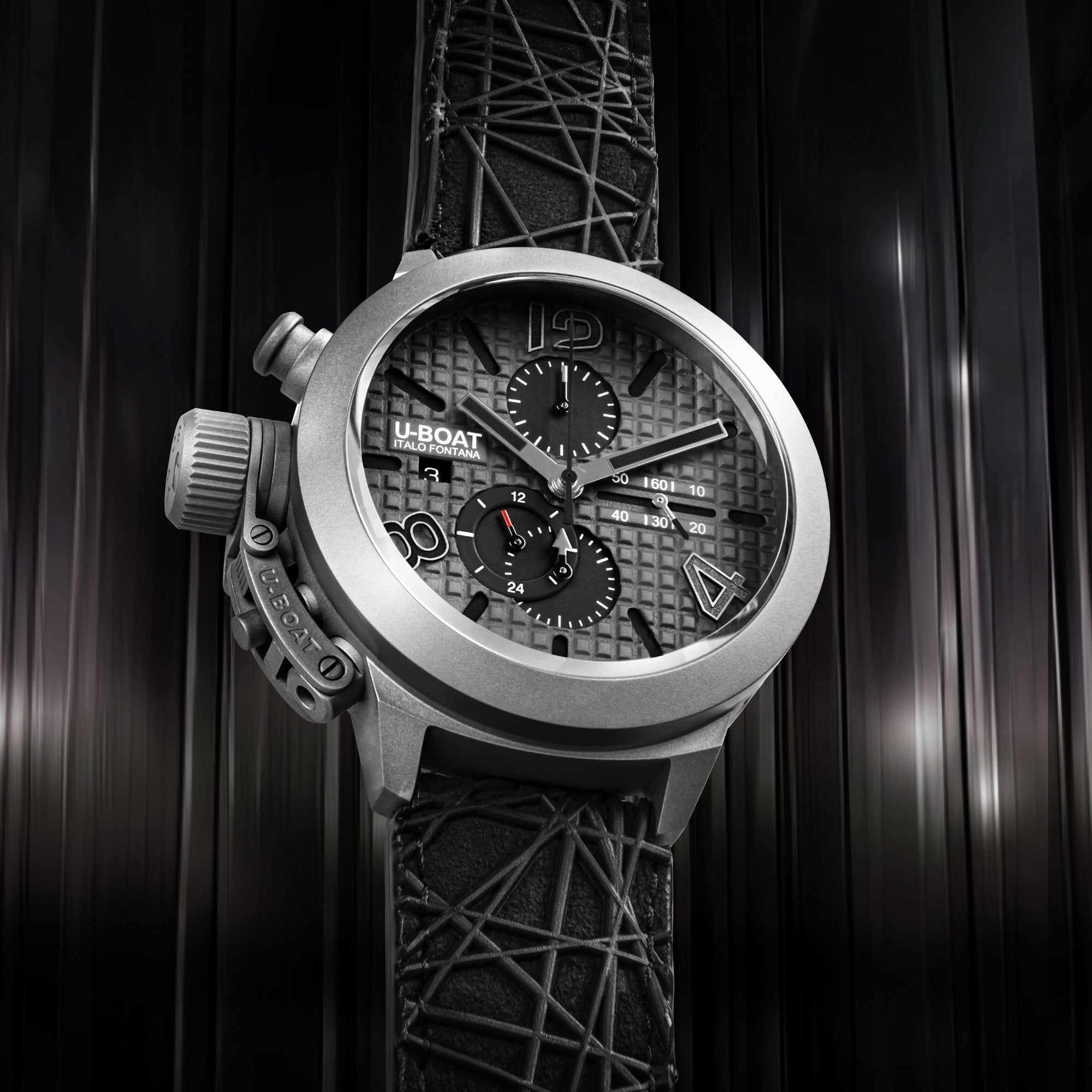 U-Boat Watch Classico 45 Titanium Chronograph Tungsten Grey Limited Edition 3002. Modern refinement in every detail, while respecting a classic and timeless design: the gray “carrés dial evokes a discreet and sophisticated elegance. A symbol of balance between innovation and tradition, encased in titanium and embraced by a tungsten bezel.
