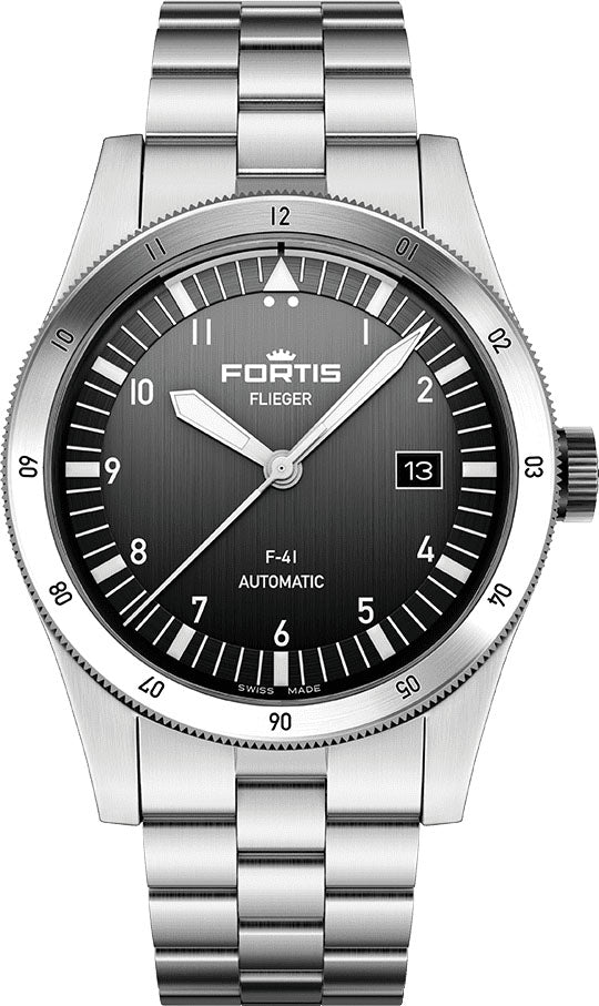 Fortis Watch Flieger F-41 Automatic Black F4220017. The Flieger is one of the most iconic models amongst all aviation watches. First created in 1987 the Flieger embodies one of the cornerstones within the brands collection. A functional pilots tool. Repeatedly rewarded. Constantly developed.