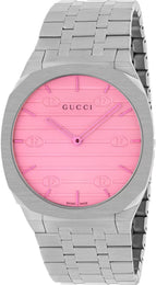Gucci Watch 25H Unisex YA163410. Combining Italian flair with Swiss craftsmanship, Gucci watches have effortlessly ascended to the very pinnacle of the hierarchy for luxury and fashion watches. Their modern and romantic designs have become renowned around the globe for taking a fashionable and bold step ahead of every other designer, always anticipating the industrys next eye catching trend.