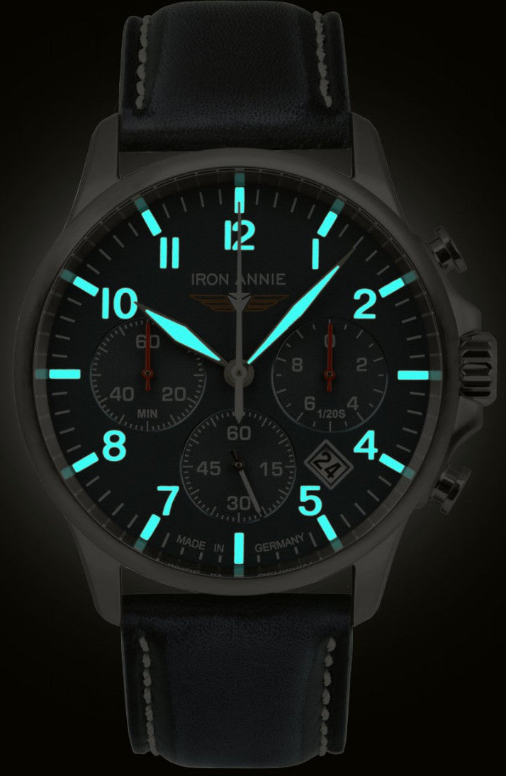 Iron Annie Watch Captains Line Mens 58723. The IRON ANNIE watches collection is a reminiscence of the JU52 with the registration D-AQUI, the well known aircraft that was affectionately renamed IRON ANNIE by an American. Like their legendary role model, all IRON ANNIE watches stand for robustness, reliability, technical innovation, high quality design and striking design. The collection impresses with sophisticated, destinctive design at an excellent price performance ratio and a high product quality. All watches are made by highly qualified watch maker in Germany.