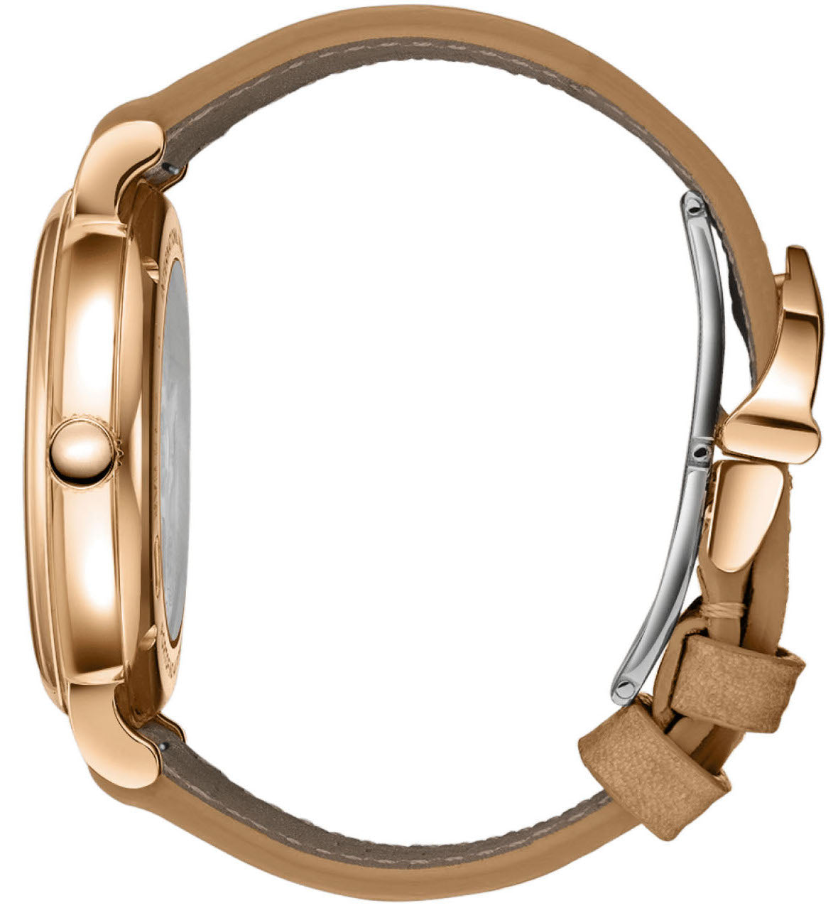 With its reduced case diameter of 37 millimetres, the Portofino Automatic 37 has become a staple in IWC’s ladies’ watches portfolio, offering excellent wearing comfort on more slender wrists. This version features an 18-carat 5N gold case, a silver-plated dial, and gold-plated hands and appliques. On the dial, 12 diamonds mark the hours. At work inside is the IWC-manufactured 32111 calibre, which uses a bidirectional pawl winding system to build up a power reserve of 120 hours. A see-through sapphire glass back displays the movement, which has been finished with a gold-plated rotor and blued screws. This ladies’ watch is fitted with a beige strap made of fully traceable Swiss calf leather. The strap has a natural and soft finish and boasts a contemporary, luxurious feel. Thanks to the integrated quick-change system, the strap can be exchanged easily.