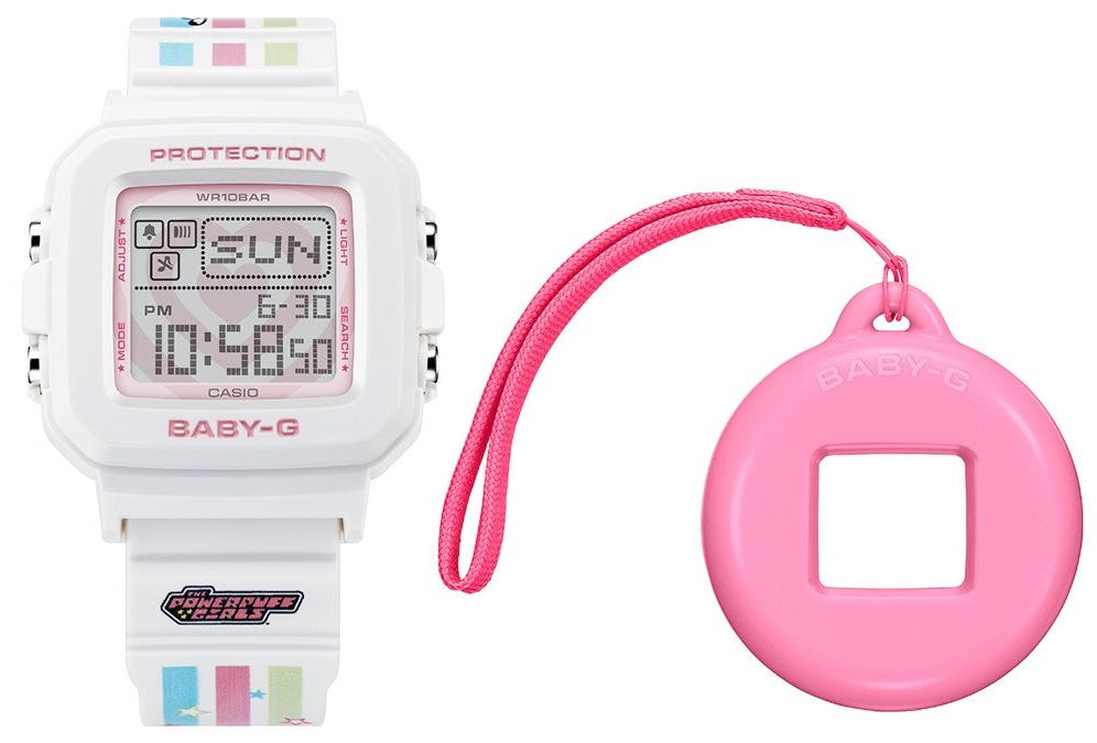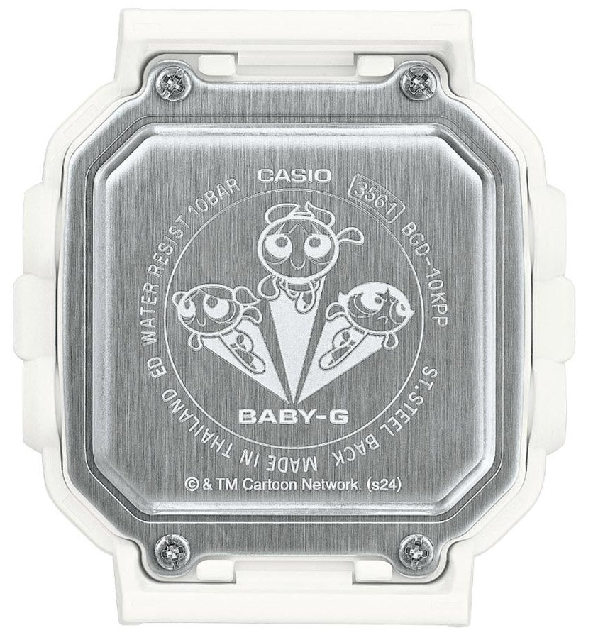 Casio Watch BGD Baby-G Powerpuff Girls BGD-10KPP-7ER. Three cute and tough superheroes paired with one tough and cute watch. This model comes with a sheet of stickers and a keyring holder, packaged in a Powerpuff Girls box.