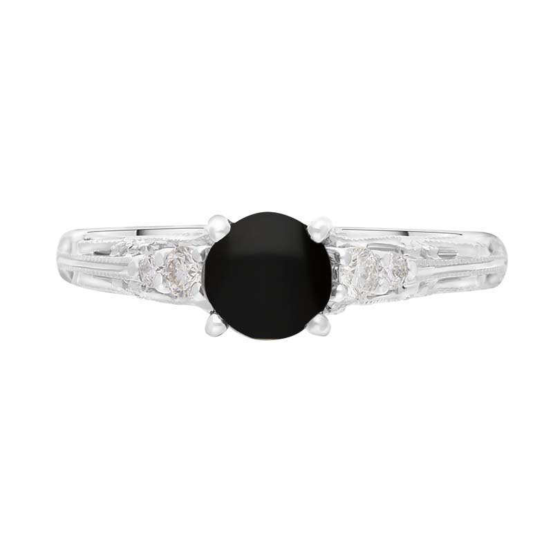 18ct White Gold Whitby Jet Diamond 0.18ct Ornate Claw Set Ring - R1274 (DMD-199/M)