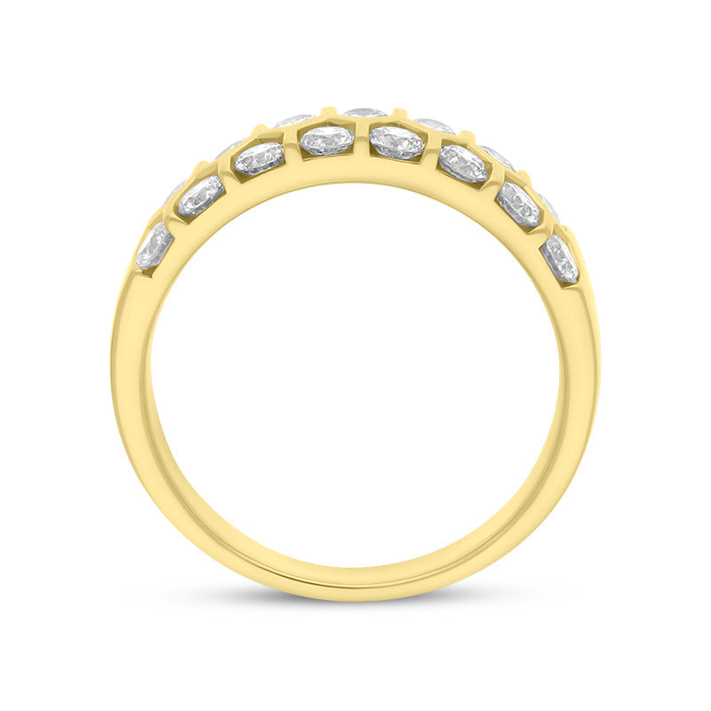18ct Yellow Gold 1.00ct Diamond Two Row Half Eternity Ring