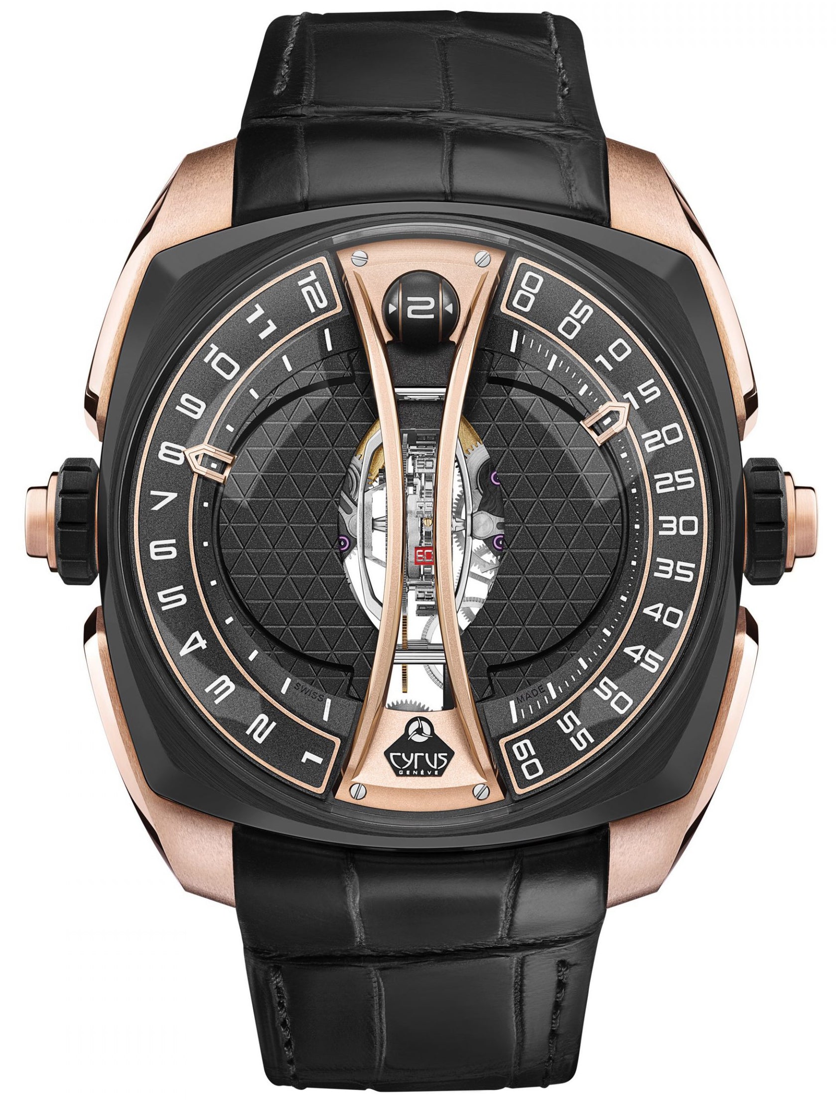 Cyrus Watch Klepcys Vertical Tourbillon Rose Gold Black DLC Titanium Limited Edition 539.505.GD.A. Each Cyrus watches timepiece encompasses the perfect balance between tradition and innovation.Engineered by the talented master watchmaker Jean Francois Mojon, each creation combines cutting edge design with innovative mechanics.