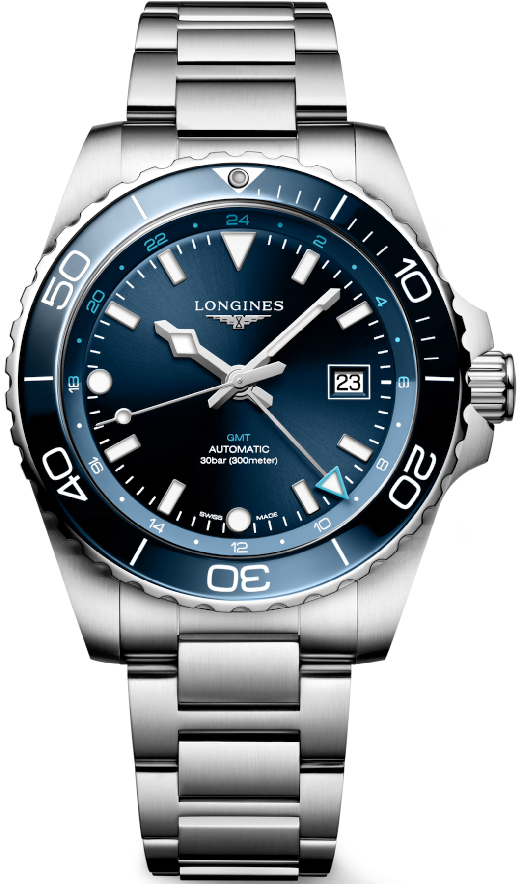 Longines Watch Hydroconquest GMT Sunray Blue Bracelet L3.890.4.96.6. Founded in 1832 in Saint-Imier, the famous Swiss watch brand Longines can boast a long tradition characterised by the elegance and performance of its products. Those values are perfectly represented by The Longines Sport Collection. The HydroConquest line is dedicated to men and women looking for a high performance timepiece that combines technical innovation and elegance.
