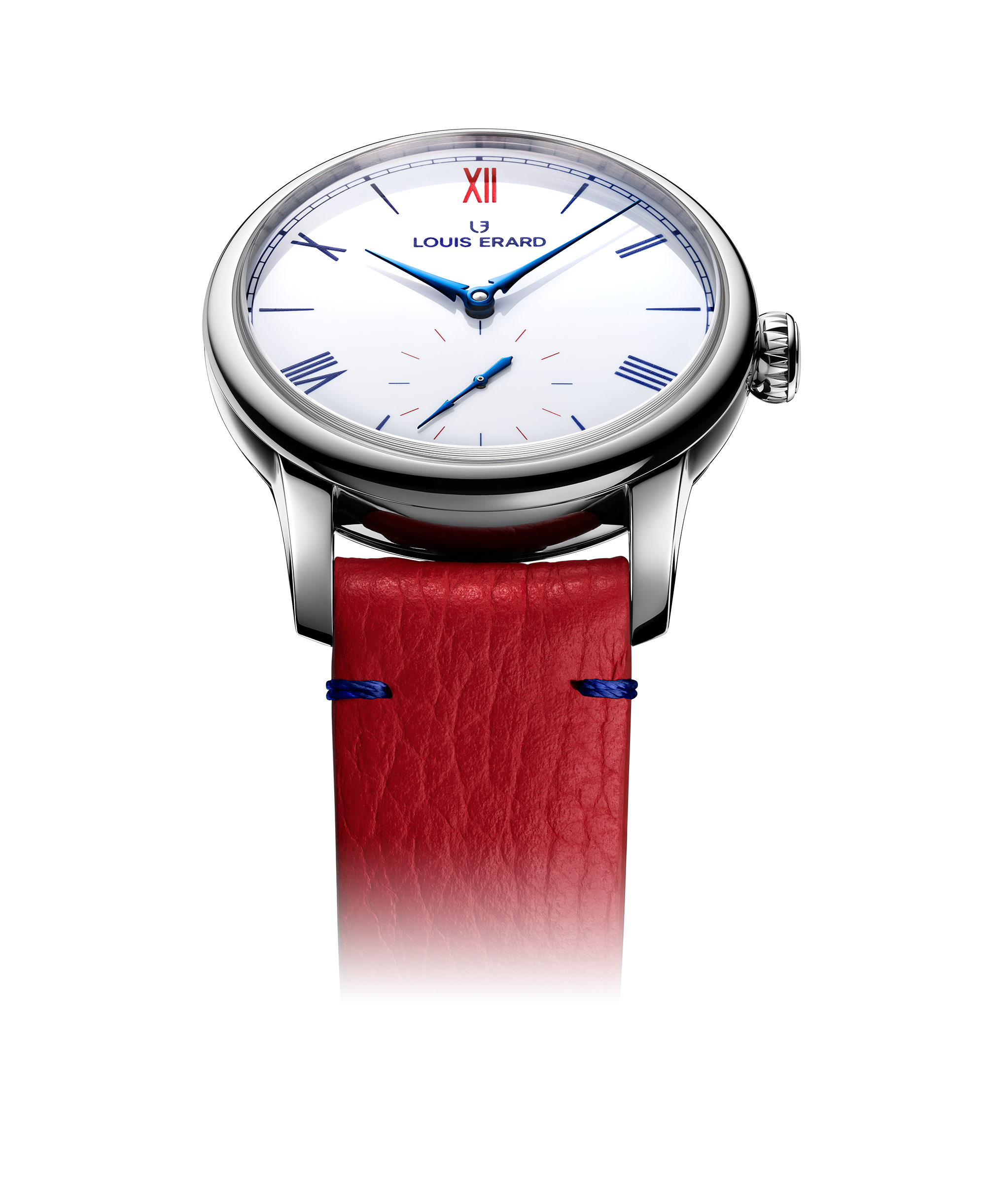 Every colour you see on a watch requires processing in a kiln at more than 800°C. This dial has three colours: white for the background, Louis Erard blue indexes, and flashes of red on the XII at 12 o‘clock and on some of the lines of the small seconds at six o'clock. For every kiln process, there are hours of preparation, not to mention the risk of something not going to plan. The artisan's dexterity changes nothing: you cannot play with fire with impunity and, despite an expert touch, the high level of waste is irreducible.