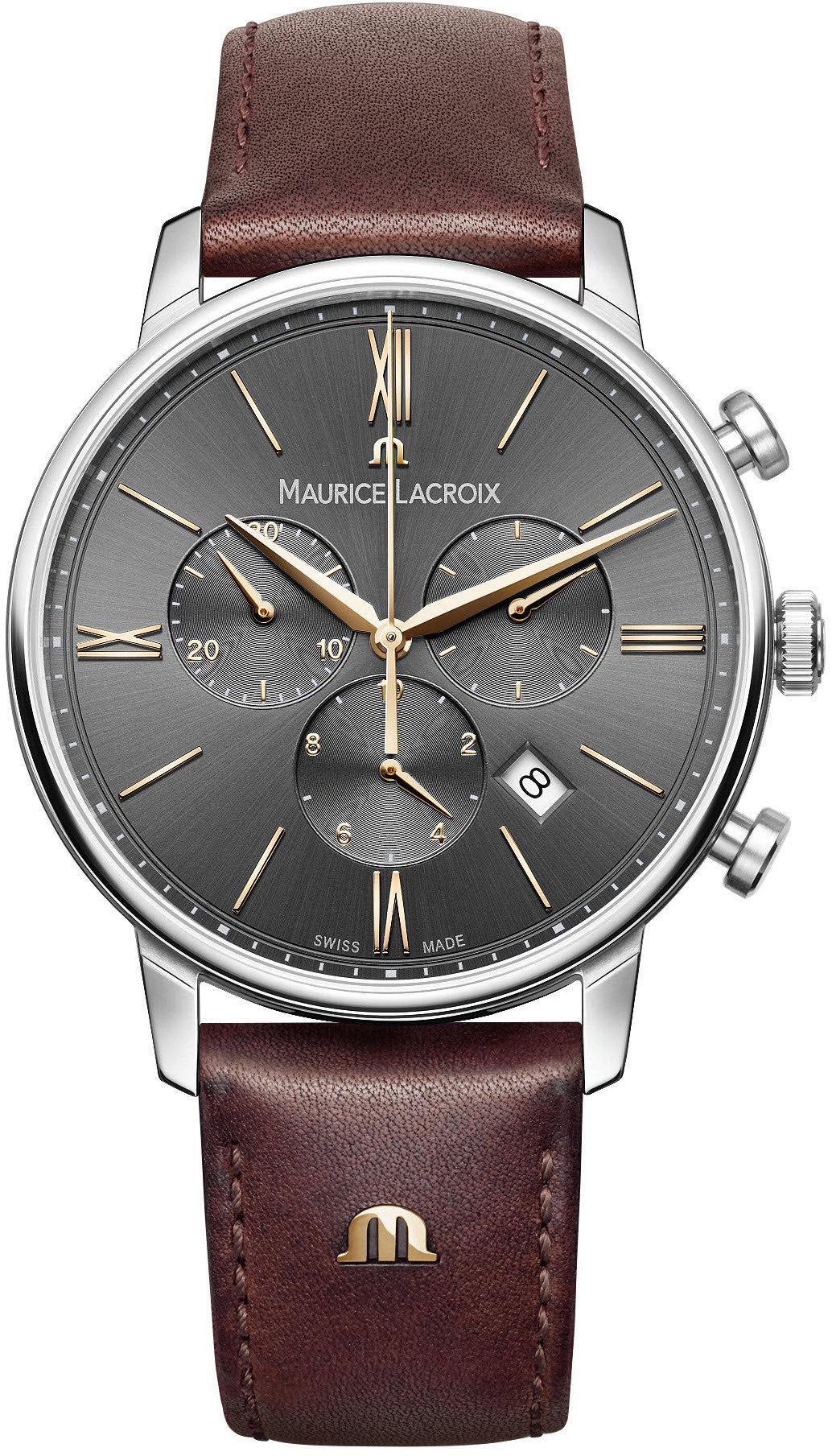 Maurice Lacroix Watch Eliros Chronograph EL1098-SS001-311-1. The Maurice acroix watches Eliros is a classically designed watch which graces the wrists of stylish wearers, imparting time with precision and reliability. At the heart of each Eliros model is a high quality, Swiss quartz movement, delivering superb precision and requiring little input on the part of the wearer.