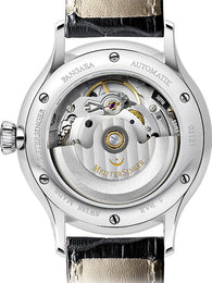 MeisterSinger Watch Pangaea Day Date PDD908 Croco Print Cognac. The Pangaea Day Date has received both a Red Dot Award and the German Design Award for its pioneering design. As it displays both the date and weekday, it provides plenty of information, although with a diameter of only 40mm and a thickness of 10.5mm, it nevertheless ranks among the smaller and slimmer watches in the MeisterSinger range. Around the center of the dial, the two day and date rings glide past each other in opposite directions. They have been brushed differently than the edge and the center of the dial, not only making their display better distinguishable, but also resulting in beautifully alternating shades of blue. The automatic movement of the Pangaea Day Date can be viewed through its transparent exhibition back.