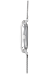 The handsome stainless steel case of this Junghans Max Bill Kleine watch measures to a comfortable 34mm in width and only 10mm in height allowing it to mould elegantly to the wrist with the help of an elegant Milanese mesh-style bracelet and safety clasp. Housed within the case is the J800.1 automatic winding movement which equips the watch with central hands for hours, minutes and seconds, a date window at 3 o’clock and a healthy power reserve of 38 hours. The silver-plated dial is adorned with environmentally friendly luminous hour and minute hands and kept protected beneath domed sapphire crystal, a material renowned for its scratch resistance and anti-reflective treatment.