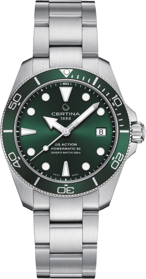 Certina Watch DS Action Diver C032.807.11.091.00. The Certina Watches DS Action Diver has long been a favourite among admirers of the Certina collection. The 38 mm version looks stunning on every wrist and shows off its exceptional quality and contemporary, compact design.