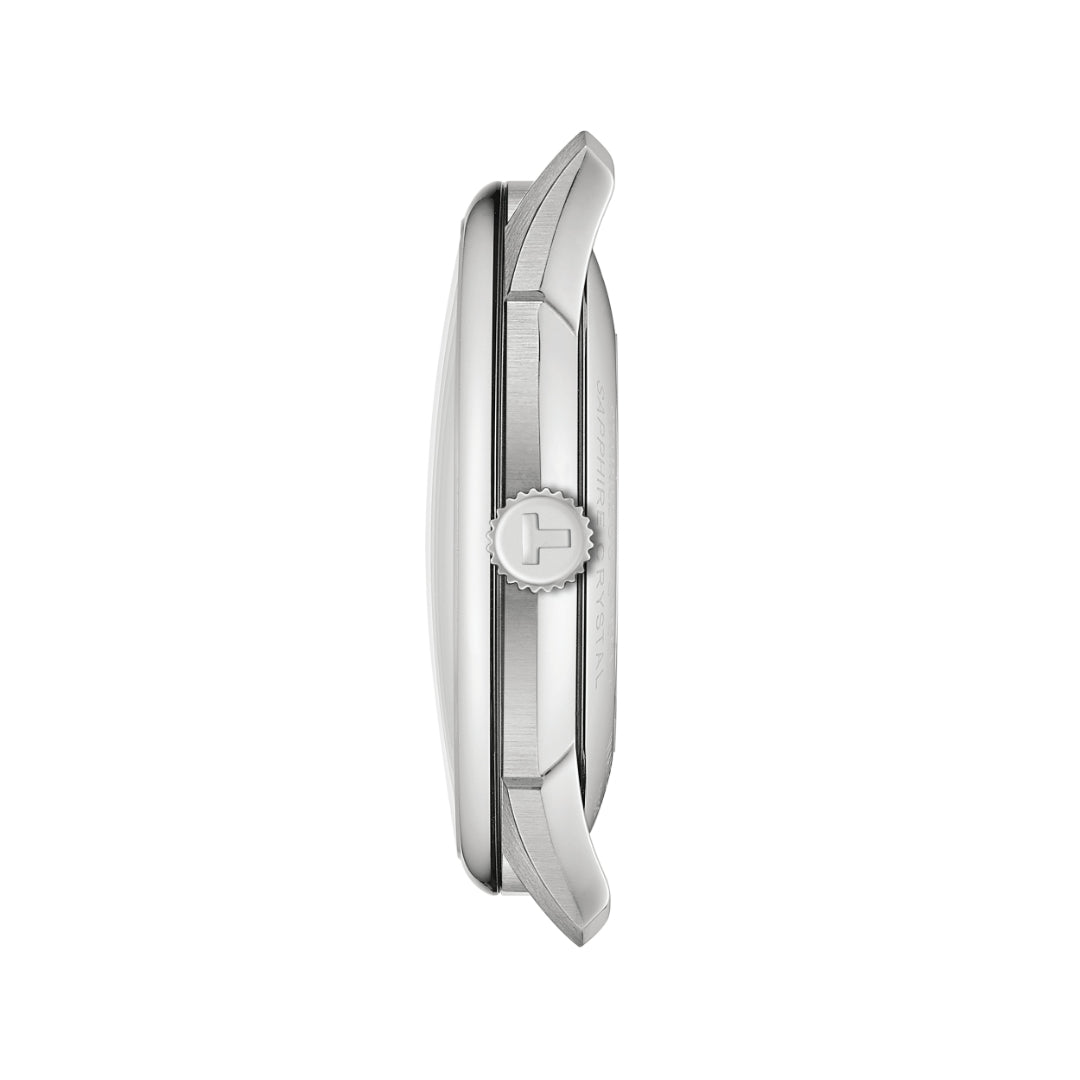 Close your eyes and think of a pure Swiss watch and you’ll see the Chemin des Tourelles. Named after the street that leads to Tissot's home in the Swiss mountains, it’s Tissot’s icon: round, classic, mechanical, ageless. Now updated and refined, this edition has a gently domed sapphire crystal that sits over a soft-sunray dial with simple, elegant baton hour markers, each faceted to catch the light in an understated but sophisticated way. And under that is the Nivachron Powermatic 80, a state-of-the art automatic mechanical movement with an 80-hour power reserve and elevated anti-magnetism. A watch for all time.