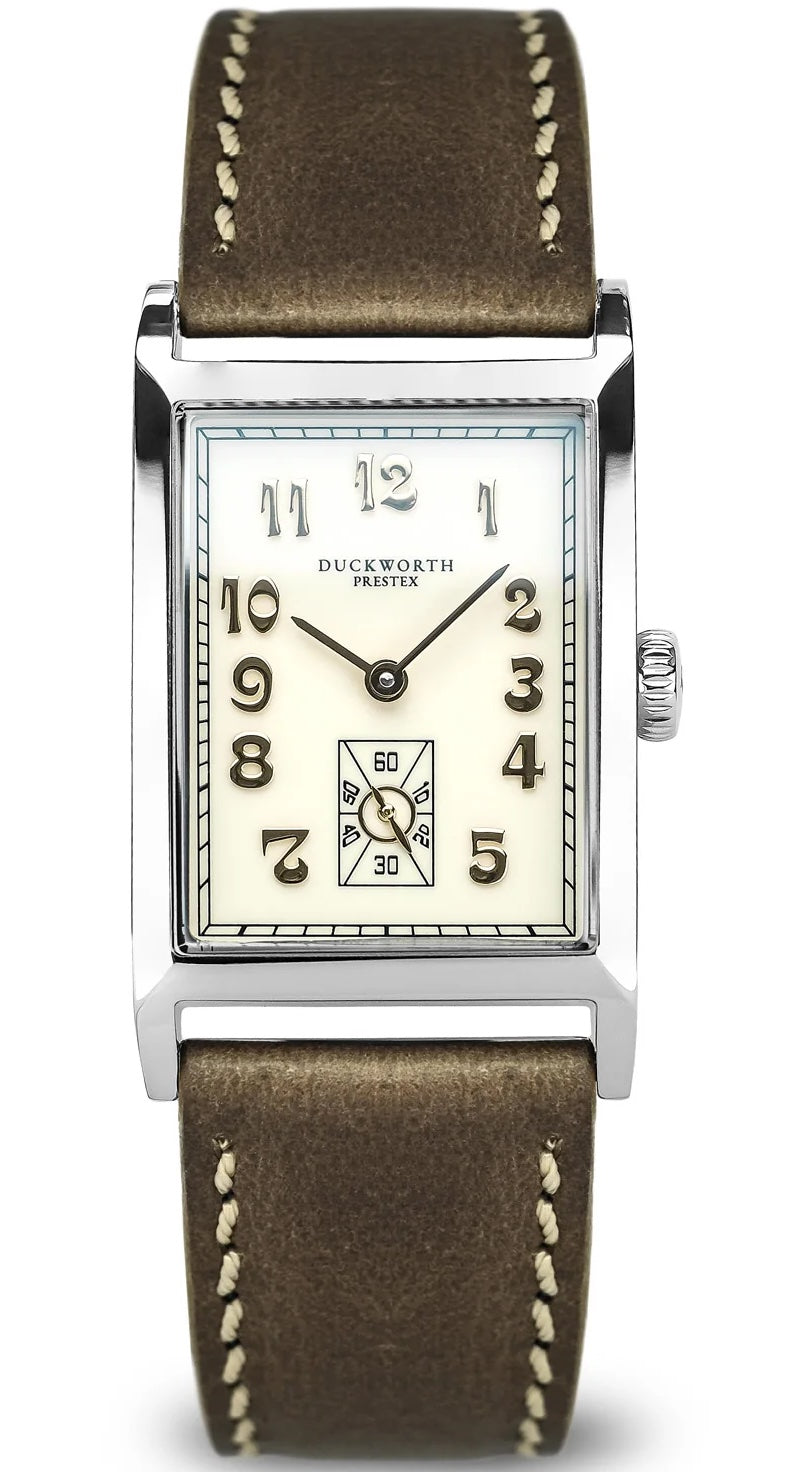 Duckworth Prestex Watch Centenary Centenary Cream Brown Leather D803-06-B. The Centenary combines the elegance of a rectangular case with original Bolton numerals.