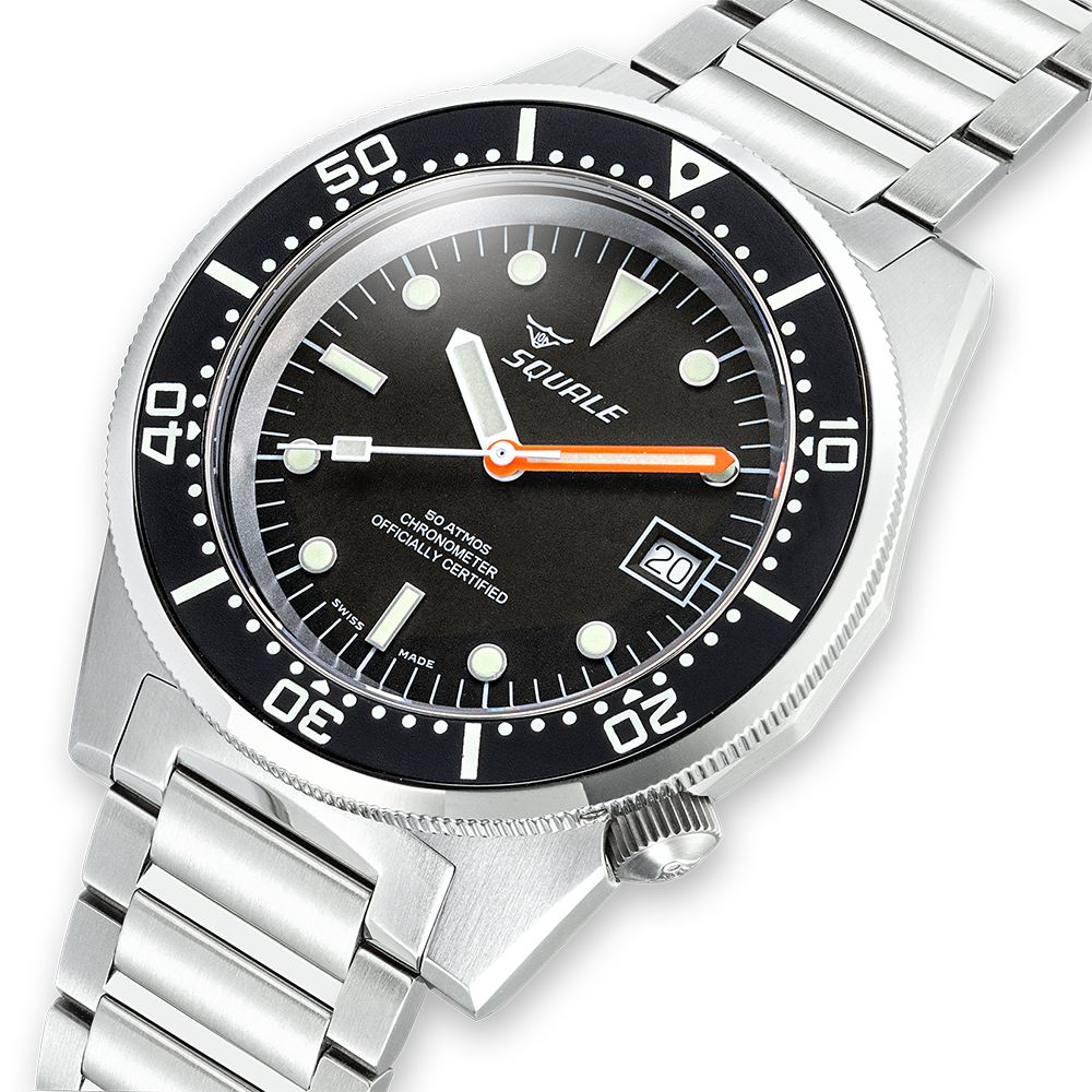 Squale Watch 1521 Classic COSC 1521COSCL.SQ20B. Since the 1950s, the name Squale and the classic Shark logo, Squale translates to Shark, have come to mean one thing, professional dive watches. Squale introduced their first 1000m dive watch with a unique crystal on flexible mountings that did not use or need a Helium release valve. Squale started to supply the elite corps of a large number of armed forces.