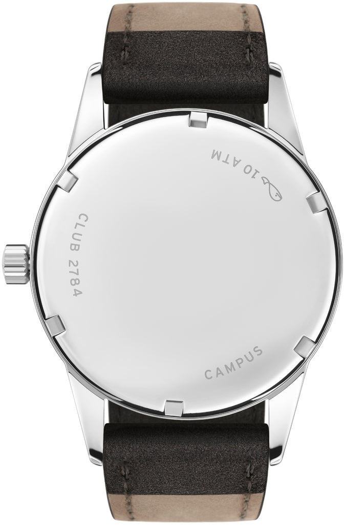 Nomos Glashutte Watch Club 38 Campus Steel Back 735. For those with big plans: Club 38 Campus. Powered by the first NOMOS caliber, Alpha, with indestructible sapphire crystal glass, an extra robust stainless steel case, water resistance to 100 meters and plenty of self confidence.