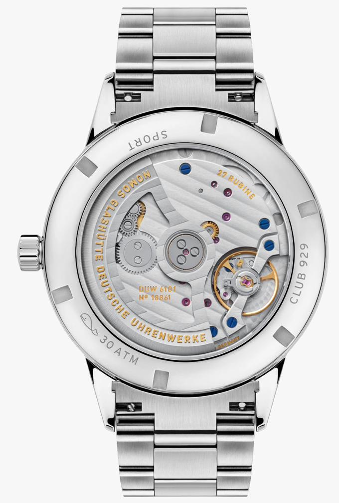 Nomos Glashutte Watch Club Sport Neomatik 42 Date Blue 782 BRACELET. This automatic watch is distinguished by a manufacturing movement. With its patented date mechanism, escapement specially developed and manufactured by NOMOS (a.k.a. the NOMOS Swing System) and, compared with similar calibers, having an exceptionally low height of just 3.2 millimeters (which meets the highest standards of Glashütte watchmaking), excellent readability and the best material components. The robustness of the new Club Sport is emphasized by a sturdy metal band made of polished stainless steel with a satin finish.