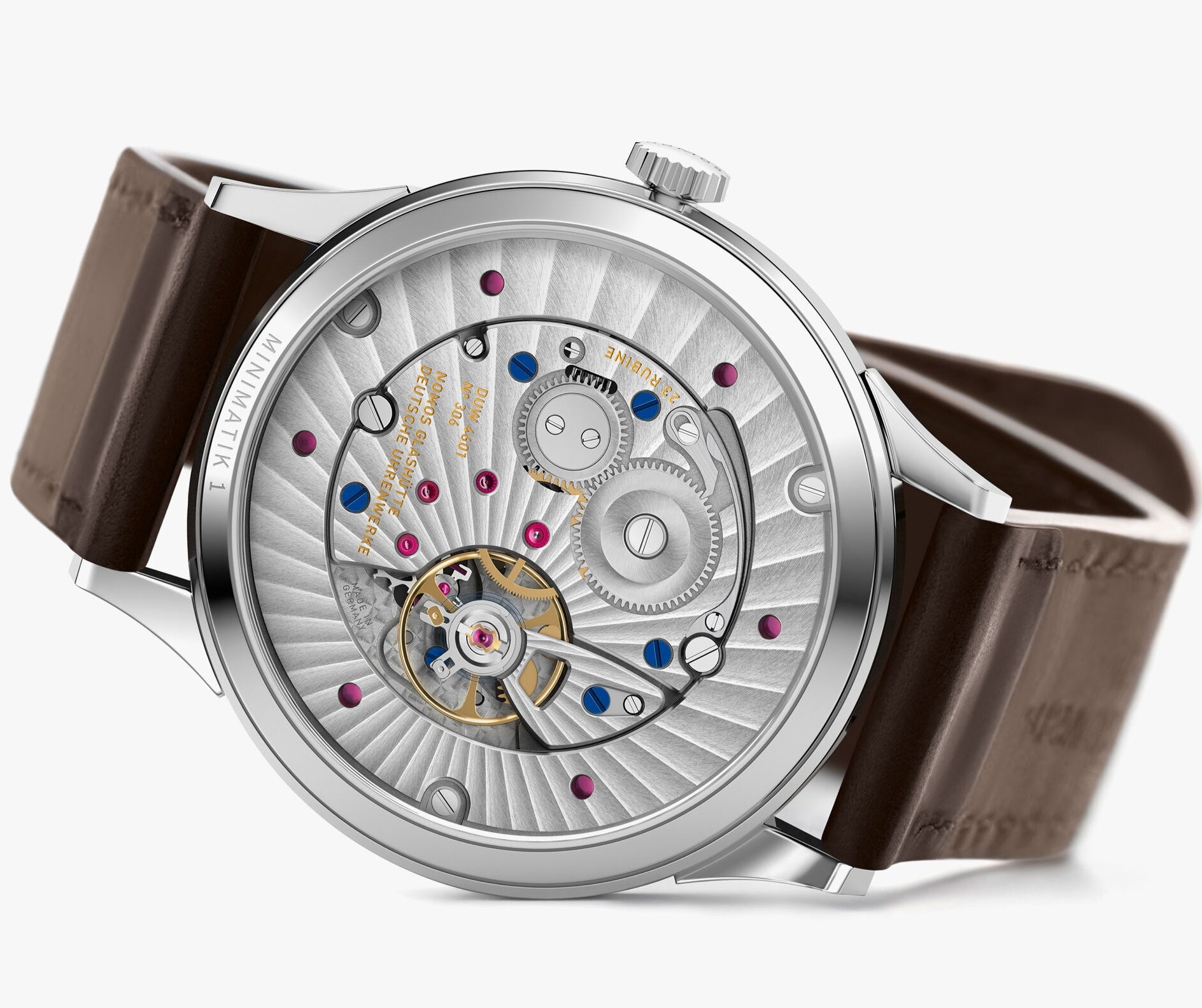 Nomos Glashutte Watch Minimatik 39 Date Gold 1251. The art of allusion: With fine details in gold, this dress watch has the aura of a gold timepiece without losing its modern touch. The date window with its golden frame is an ode to every day. Modern and sleek, the delicate, slightly curved golden hands flow from the center of the dial to a round tip. Modern and harmonious, the design of this appealing watch is defined by precise forms. Inside, a hand wound caliber made by NOMOS in Glashutte, Germany, ticks with high precision.