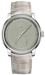 Parmigiani Fleurier Watch Toric Petite Seconde Platinum PFC940-2010004-300181. The revival of a legend, combining the highest traditional watchmaking skills with a brand-new approach, fresh and contemporary. The TORIC Petite Seconde redefines drastically the codes of the conservative dress watch thanks to the choice of colours and execution: gold manual winding new movement, gold or platinum case, gold “chevé dial, gold indexes and hands, gold crown, pin buckle only to admire the movement.