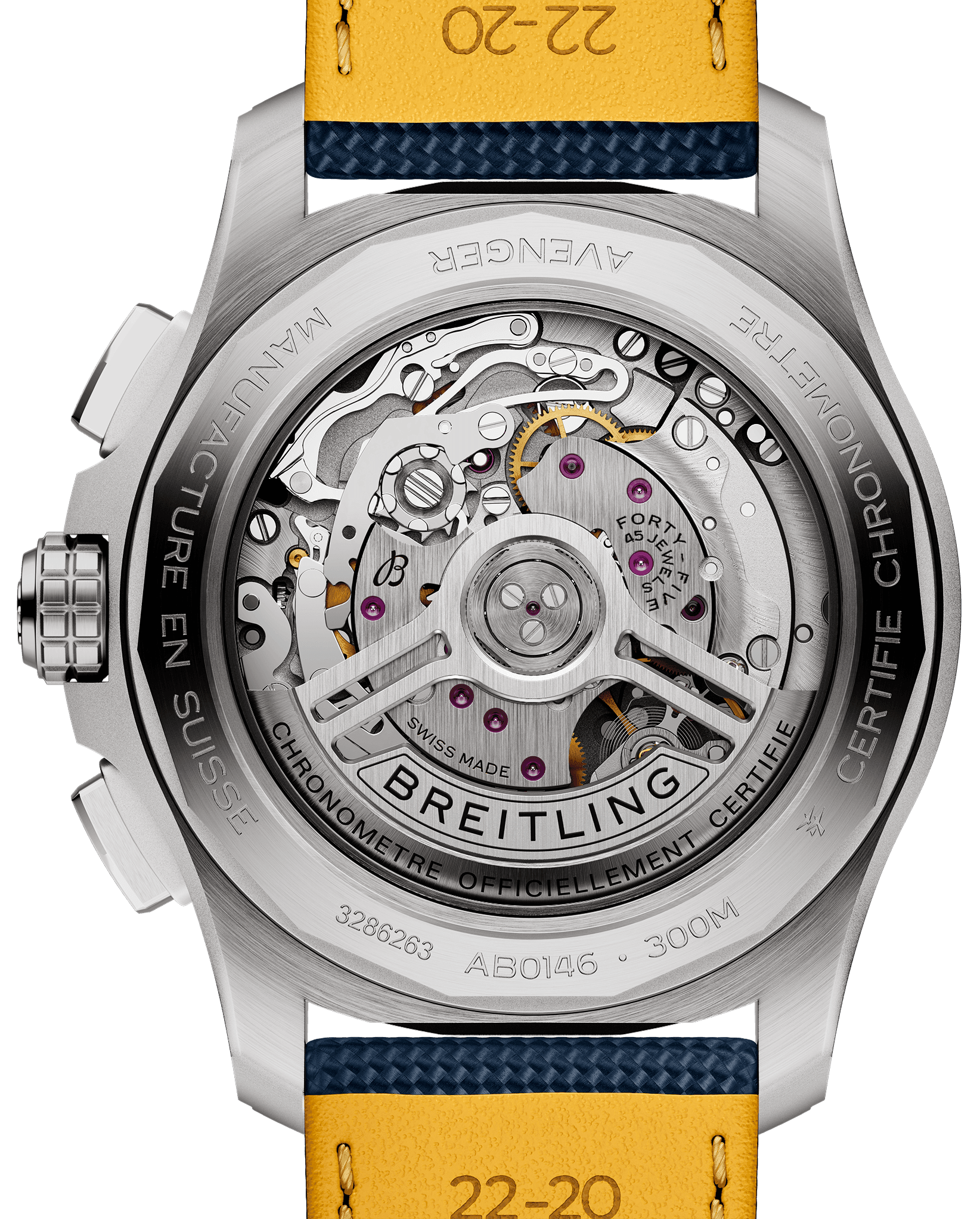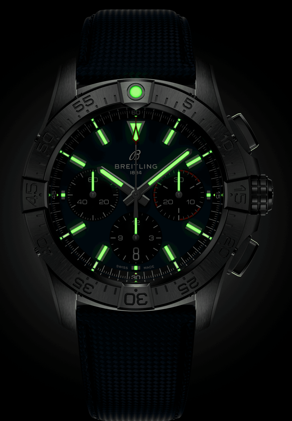 Breitling Watch Avenger B01 Chronograph 42 AB0146101C1X1. Built for jet pilots, the Avenger is designed to take on the toughest cockpits and keep coming back for more. But you don’t need air force credentials to appreciate its bold design, exceptional resilience, and next-level functionality. Pairing performance with sophisticated modern aviation style, the collection’s materials—stainless steel on regular models; ceramic and titanium on Night Mission —are the stuff of aviation design, while dial colors are drawn from military uniform shades. All stainless-steel versions come with a choice of military leather strap with a folding-pin buckle or three-row stainless-steel bracelet with micro-adjustable folding clasp. Ceramic models are paired to a military leather strap with a titanium folding-pin buckle. And whether you can pull off a barrel roll or not, you’ll appreciate everything about the Avenger’s 300 m water resistance, easy-grip functionality, and corrosion-resistant construction.