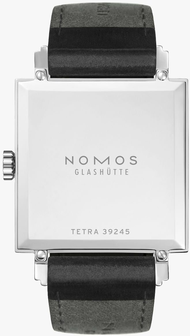 Nomos Glashutte Watch Tetra Steel Back 408. Steel case back. Manufactory, one word that combines two Latin terms: manus = hand, factura = to make, to produce. In the watch industry, producers are designated as manufactories if they design their own movements and produce a significant part of the caliber themselves rather than buying these components from a third party. NOMOS is one of only a few watchmakers with the designation of manufactory.