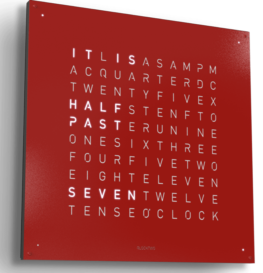 QLOCKTWO Earth 90 Red Pepper Wall Clock LG4ENREPC. The EARTH is a tribute to the unique cultural heritage of time and our planet. It displays the 24 hours of a day on a word matrix in the languages of our world.