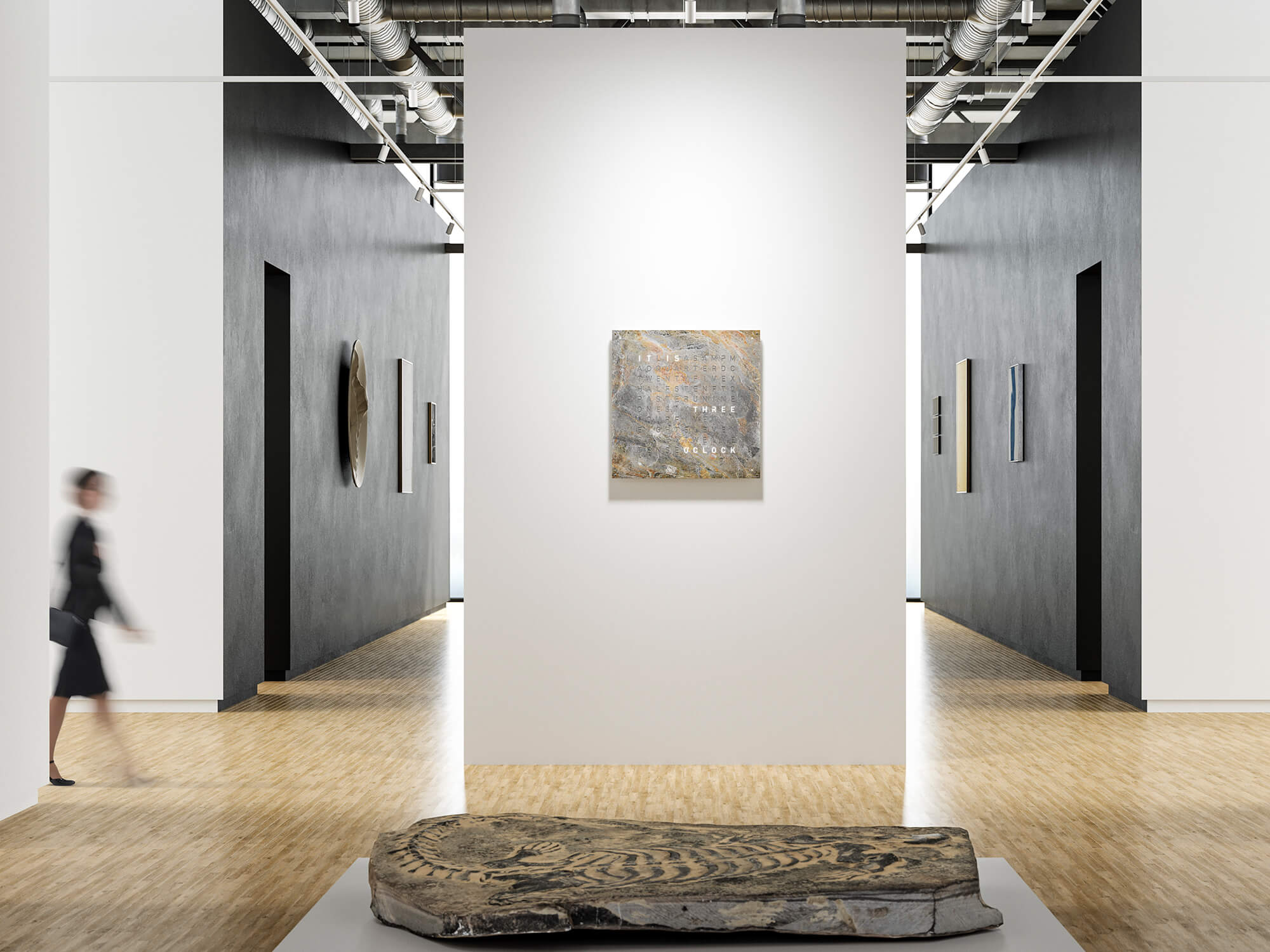 • GLINTSCAPE - The QLOCKTWO EARTH 90 CREATOR’S EDITION GLINTSCAPE is created with million-year-old sedimentary rock, which fascinates with a unique relief of random irregularities and a pearlescent surface. Delivered on a white clock body. With its tones of green, red and gold, the object is reminiscent of an autumn landscape reflected in a sparkling lake.