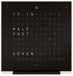 The typographic font combines the moment with the written word and makes a statement: “IT IS QUARTER PAST SEVEN. The words change in five minute increments, with four small, illuminated corner points displaying the minutes in between.