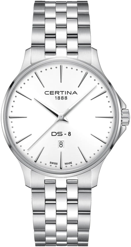 Certina Watch DS-8 Gent 40mm C045.410.11.011.00. The DS-8 Gent 40mm quartz watch features a clean, minimalist design that embodies timeless elegance. With its comfortable wear and versatile style, it seamlessly complements any outfit, making it an ideal everyday accessory.