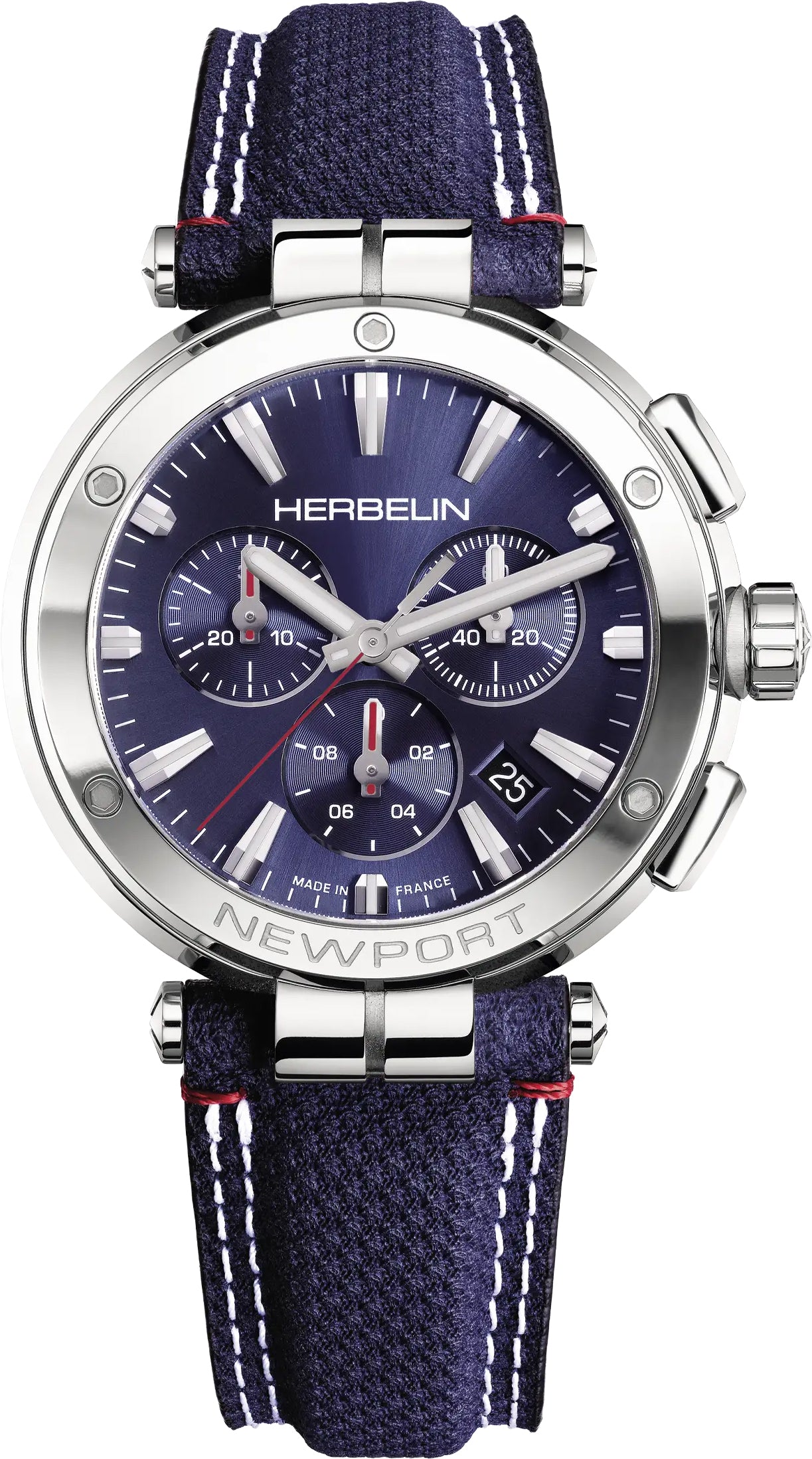 Herbelin Watch Newport Chronograph 37658AP15BL. Inspired by the portholes of transatlantic sailing ships, Newport, an iconic line created in 1988, continues to reinvent itself.