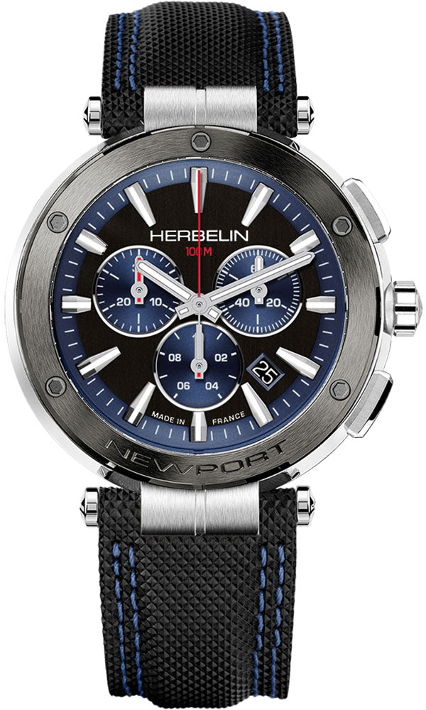 Herbelin Watch Newport Chronograph 37688AG65. Inspired by the portholes of transatlantic sailing ships, Newport, an iconic line created in 1988, continues to reinvent itself.