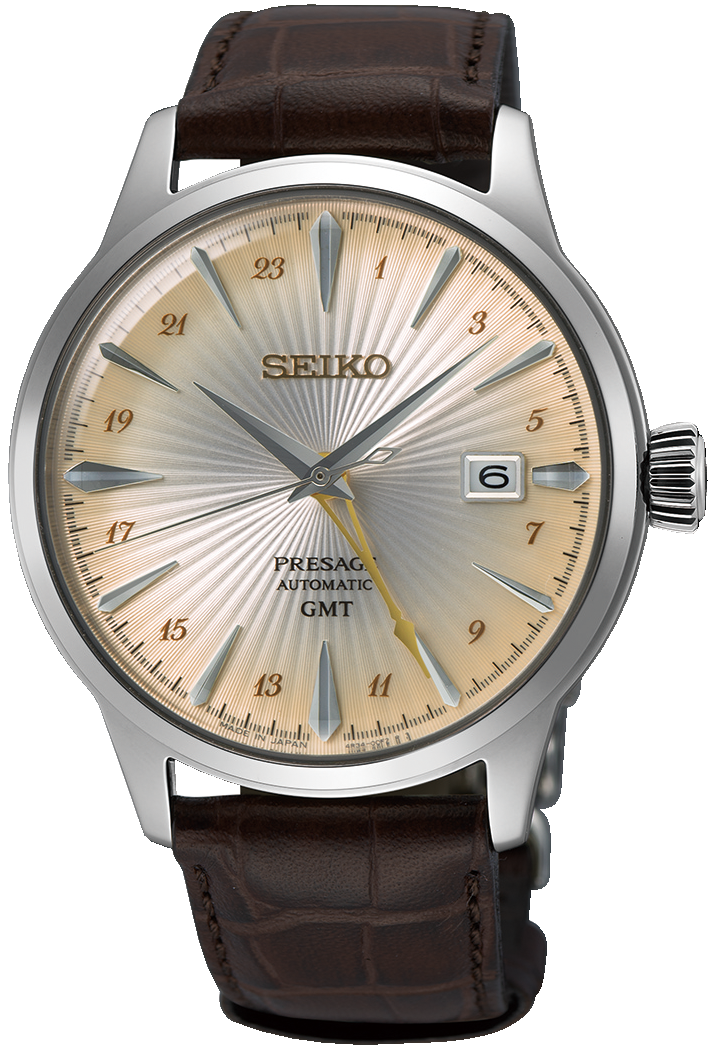Seiko Presage Watch Cocktail Time Acacia GMT SSK041J1. This watch is one of a new trio of Seiko watches which are Presage’s first Cocktail Time pieces with GMT functionality.