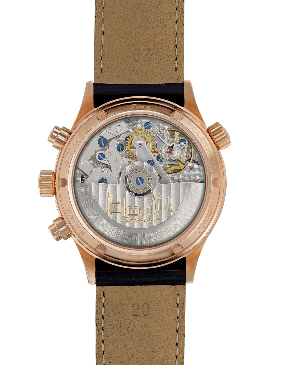 To commemorate the fascinating city of Frankfurt that houses both Sinn's headquarters and the European Central Bank, this Sinn 6000 Finance Center Rose Gold watch was created. Frankfurt is considered the financial centre at the heart of Europe and so Sinn Watches believed it was only fit to design a timepiece that was classic, high functioning and could display three time zones on a 12 hour basis.