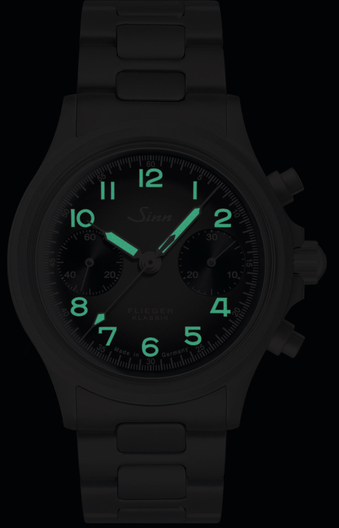 Sinn Watch 356 Pilot Classic AS E Leather 356.0202 Leather. Unlike the timepiece in the beginning, the 356 PILOT Classic AS E and 356 PILOT Classic W are equipped with a special complication. This refers to the bicompax arrangement of the black, electroplated matt silk counters. As an appreciative expression of 25 steadfast years, Sinn have enhanced the dials at six o clock with the unmistakable lettering FLIEGER KLASSIK, which is also a novelty in this series.