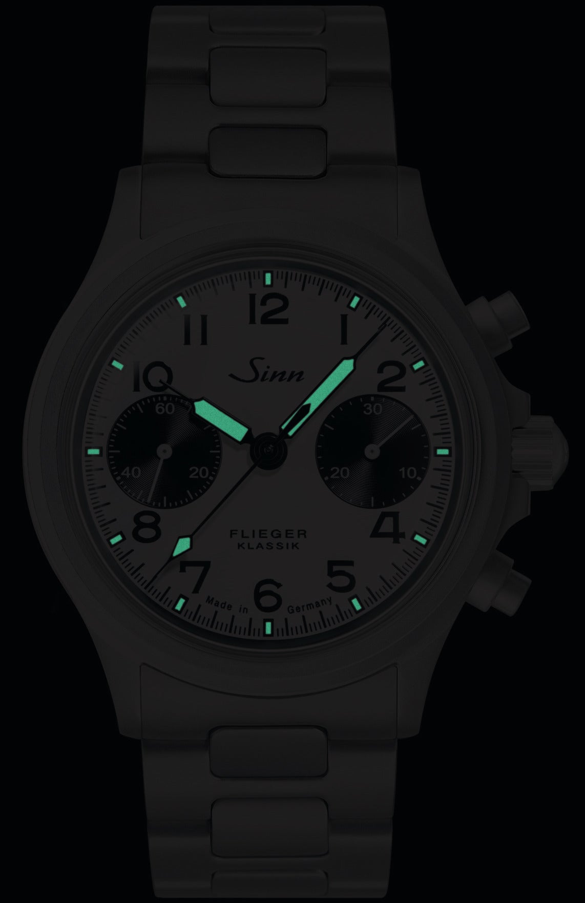 Sinn Watch 356 Pilot Classic W H-Link Bracelet 356.0201 Bracelet. Unlike the timepiece in the beginning, the 356 PILOT Classic AS E and 356 PILOT Classic W are equipped with a special complication. This refers to the bicompax arrangement of the black, electroplated matt silk counters. As an appreciative expression of 25 steadfast years, Sinn have enhanced the dials at six o clock with the unmistakable lettering FLIEGER KLASSIK, which is also a novelty in this series.