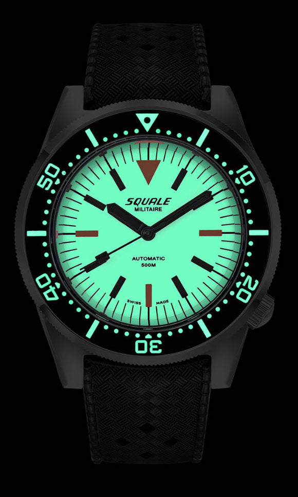 Squale Watch 1521 Full Luminous Militaire 1521FUMIWT.HT. Since the 1950s, the name Squale and the classic Shark logo, Squale translates to Shark, have come to mean one thing, professional dive watches. Squale introduced their first 1000m dive watch with a unique crystal on flexible mountings that didn not use or need a Helium release valve. Squale started to supply the elite corps of a large number of armed forces.