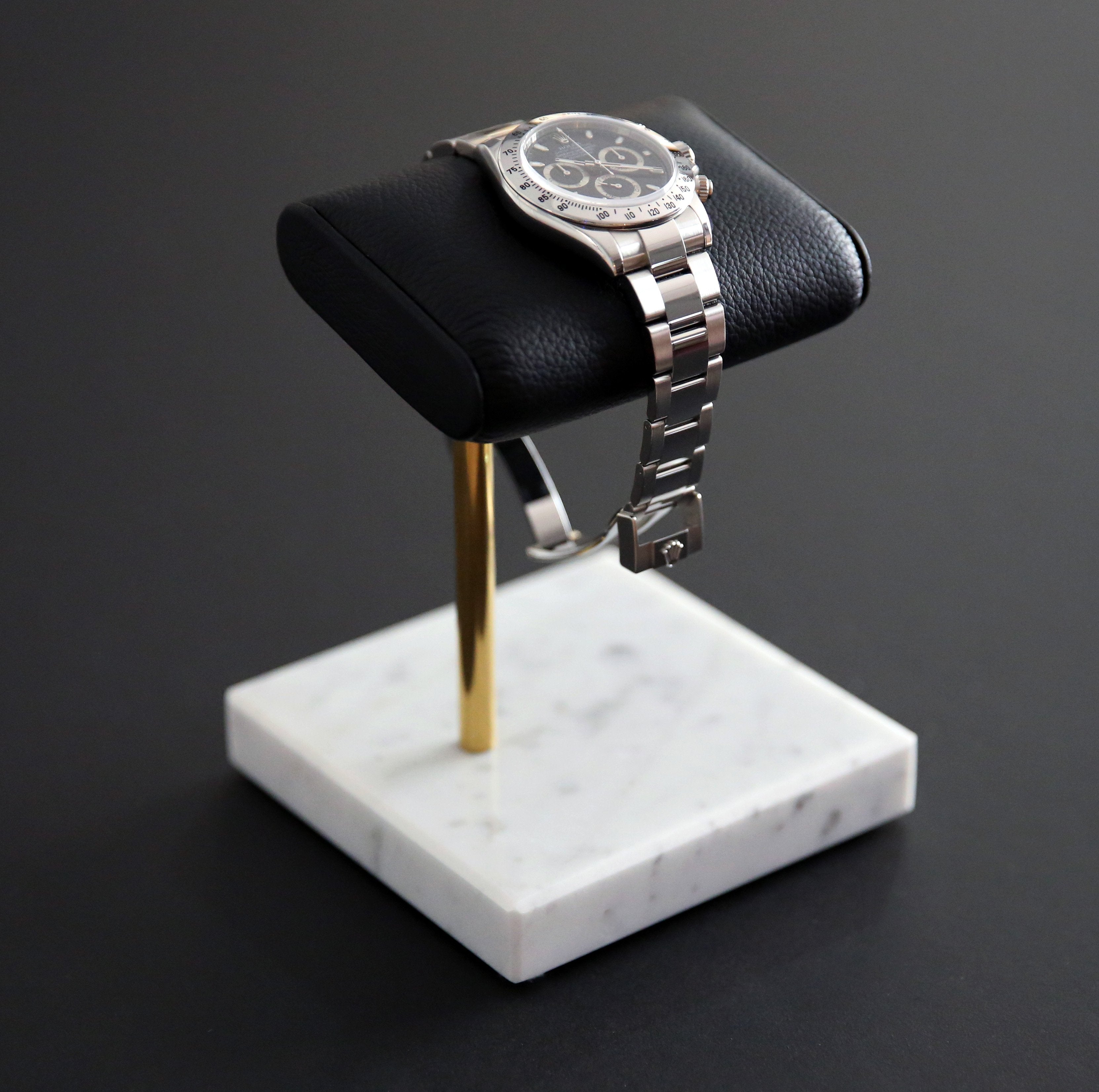 The Watch Stand will help prevent the inevitable scratches and blemishes that build up when putting your watch on a hard surface or save you the time of having to put the watch in its case.