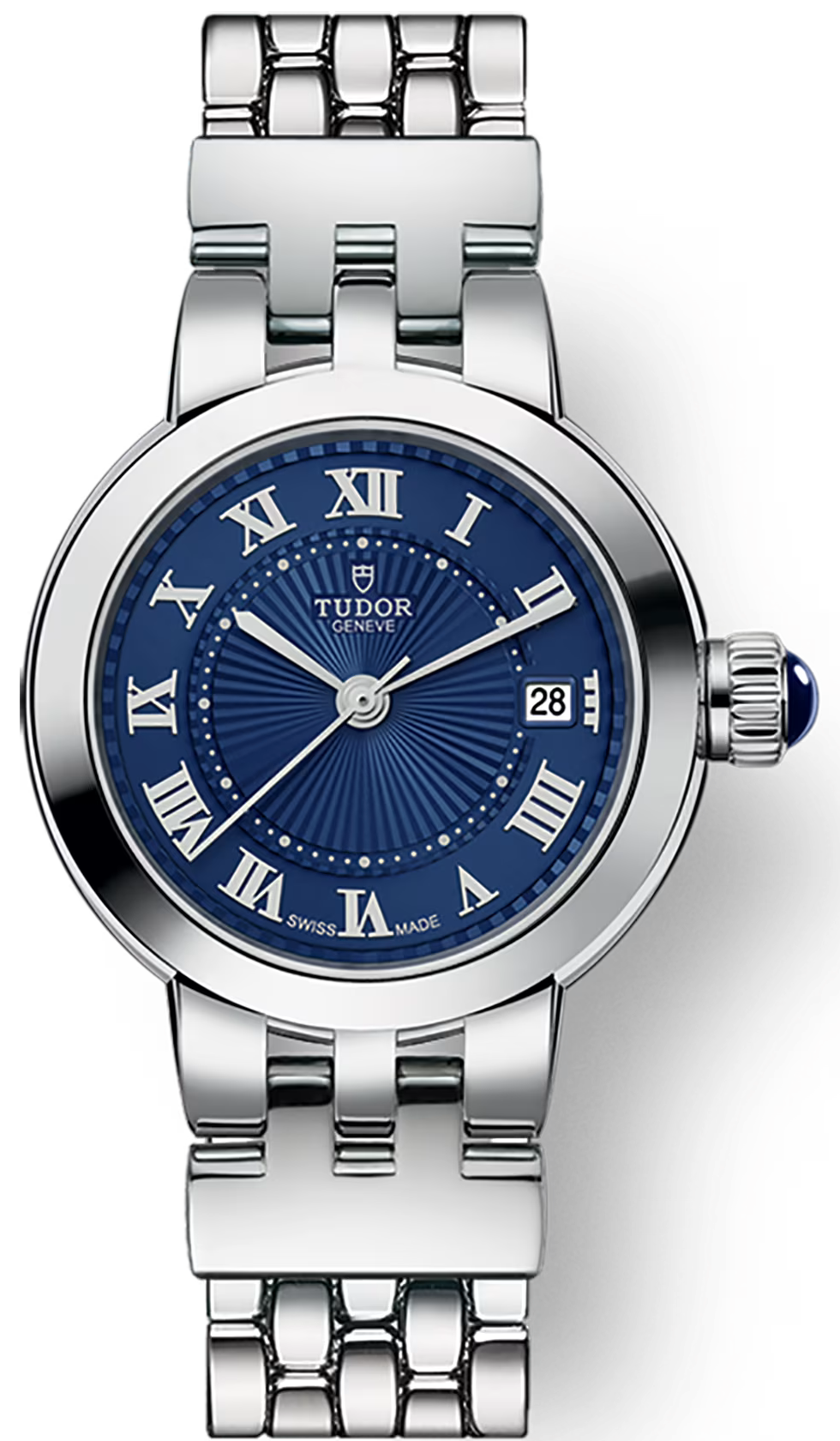 TUDOR Watch Clair De Rose 26mm Blue M35200-0009. Clair de Rose is a classic TUDOR line whose name poetically refers to both clair de lune, moonlight in French, and the historical logo of the brand, a rose, combining the two in a playful way.
