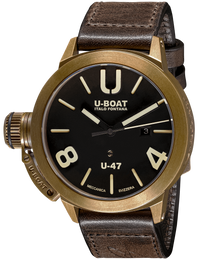 U-Boat Watch Classico U-47 Bronze 7797. The Classic collection represents Italos idea of the pure, timeless design that doesnt fade and die like passing fashions. The Classic watches have been designed for men and women with a strong personality. The Classico watch features a left hand crown placement with the characteristic U-BOAT crown guard. With its bold military inspired design, large dial and a metal plate fixed to the strap, it captures the essence of the companys popular style.