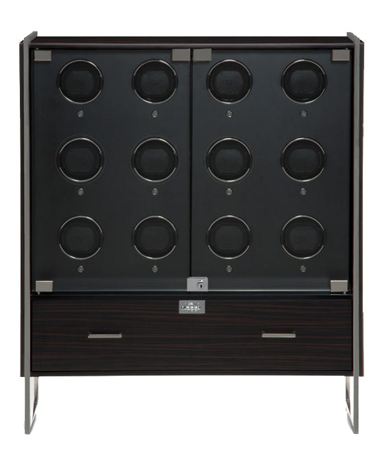 WOLF Watch Winder Regent 12 Piece Cabinet Matt Zebra Black